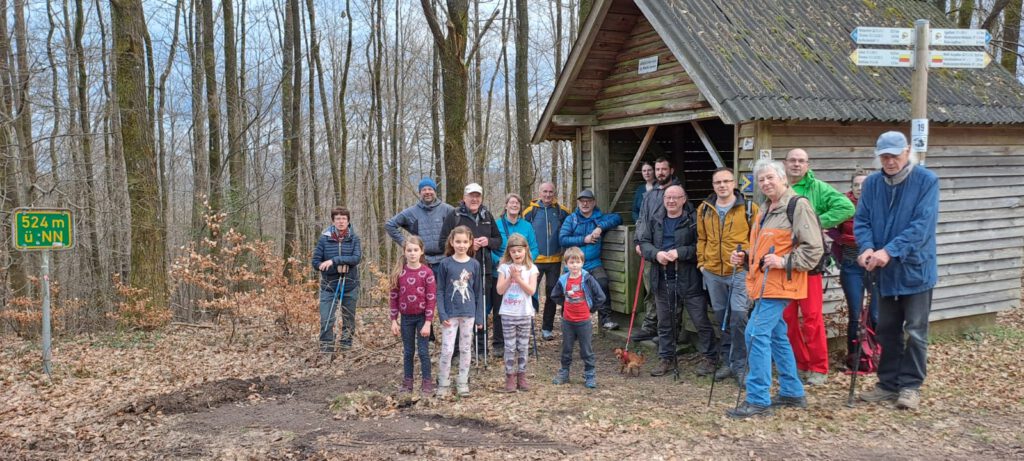 Vierzehn Wanderfreunde und -freundinnen trafen sich am Dorfplatz in Esthal bei jahreszeitlichen Temperaturen. Besonders begrüßt wurde ein Gastwanderin, die eigens aus Limburgerhof angereist war, um diese Tour zu begleiten. Über den Michelsberger Weg war der Anstieg zu den Eschdler Bänk eher moderat und so blieb mehr Luft, um sich auszutauschen und nette Gespräche zu führen.